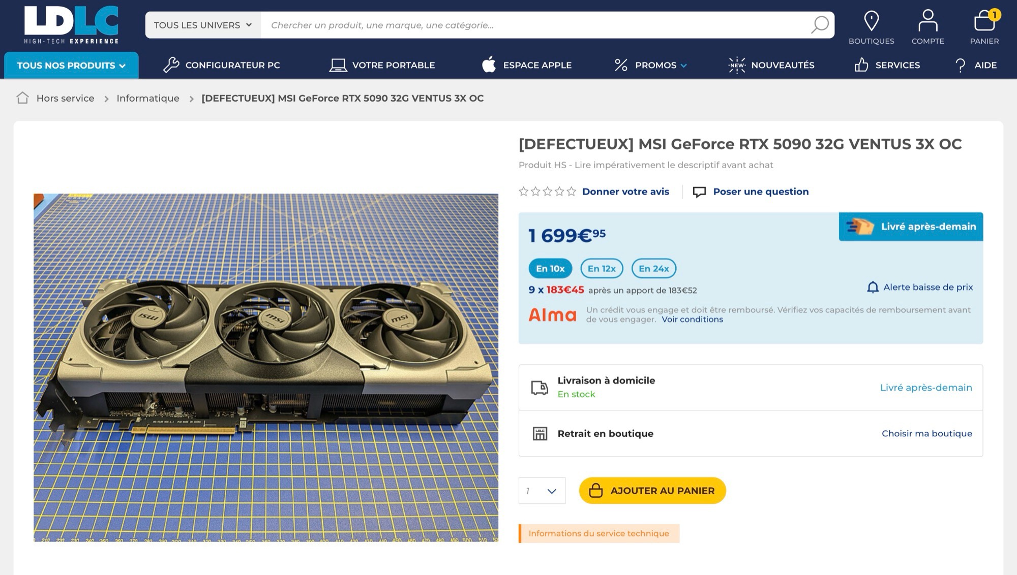 但问题是:这些显卡不能退货。如果无法维修,购买价格就会损失。LDLC 目前提供两种型号,一种是华硕GeForce RTX 5090 TUF Gaming,售价 1499 欧元;另一种是微星GeForce RTX 5090 Ventus 3X OC,售价 1699 欧元。在 易趣GeForce