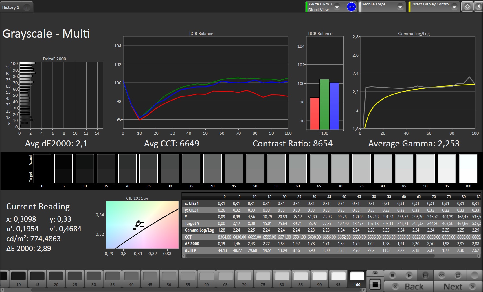 ΔE Greyscale Calman: 2.1 | ∀{0.09-98 Ø5}