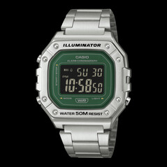 W-218HD-3AV是纯数字表款,也是该系列中唯一配备不锈钢表带和三重折叠表扣的表款。它采用了经典的方形工业设计,尺寸小巧,而不是其他两个型号的超大设计。我们很容易注意到这些技术上的妥协:防水深度降低到 50 米,7 年的电池续航时间虽然不错,但也只是介于模拟和混合表款之间。金属表带的使用使其重量增加到 85 克,尽管表壳占地面积最小,但它却是该系列中最重的表款。