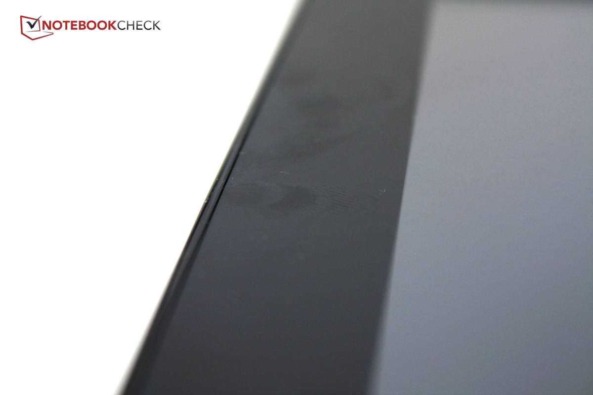 Given the price point, we cannot expect any metal in the construction - or can we? Even smaller manufacturers like Captiva or Pearl use aluminum on the back of their tablets; Prestigio equips their tablet with a rubberized - and therefore slip-resistant - back. Just in itself, the price is certainly not justification enough for lower-end materials - but the Asus Memo Pad Smart 10 is all plastic. That is not necessarily a disadvantage - as long as the construction is up to par. Unfortunately, the chassis is easy to twist and pressure on the back is even visible on the display itself. At least the build quality is decent and the gaps between the different sections are even.