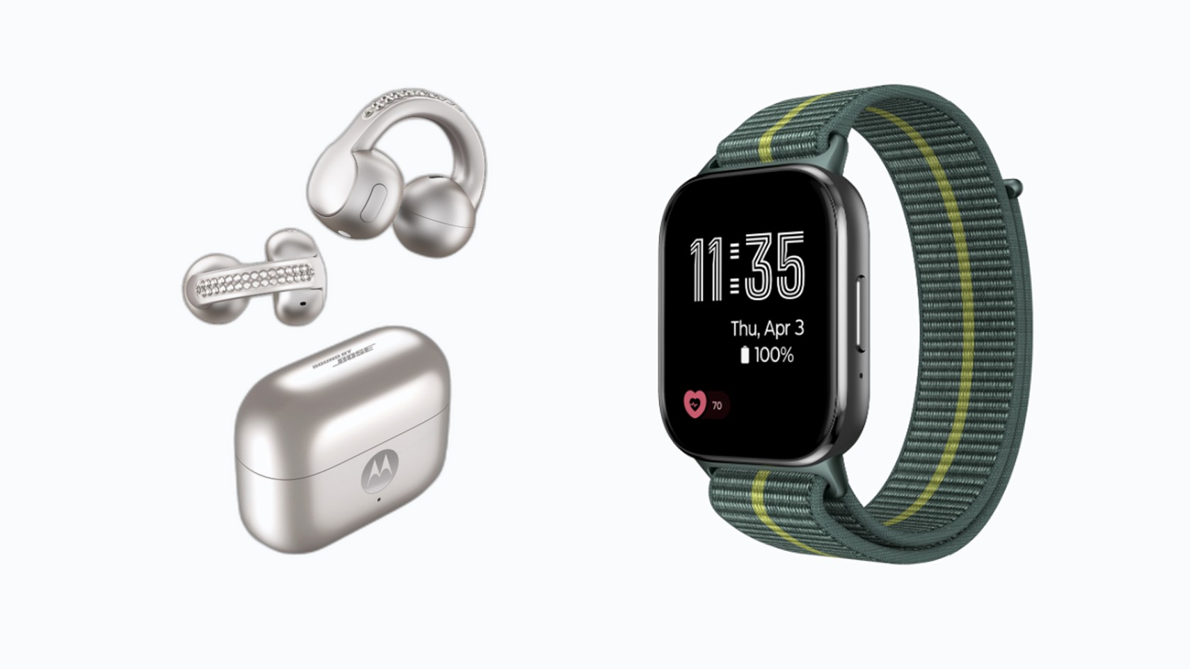 根据埃文-布拉斯(Evan Blass)在 X 上发布的泄露的生活方式产品图片,摩托罗拉可能很快就会发布其首款开放式耳塞和新款智能手表。图片展示了这两款设备的外观,但不包括任何技术规格。