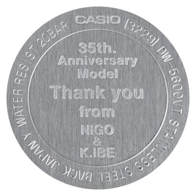 这两款手表是DW-6935-4 和 DW-5635-9这两款手表是 2018 年为纪念 G-Shock 35 周年而设计的,由日本时装设计师NIGO(A Bathing Ape 服装系列的创作者)与Kikuo Ibe伊部喜久男,G-SHOCK 的发明者。据 卡西欧的最初公告,这些超限量表款采用了特殊的半透明着色工艺,使用荧光染料覆盖两层树脂和抗紫外线涂层,以防止日光引起的褪色,这在 G-Shock 中尚属首次。