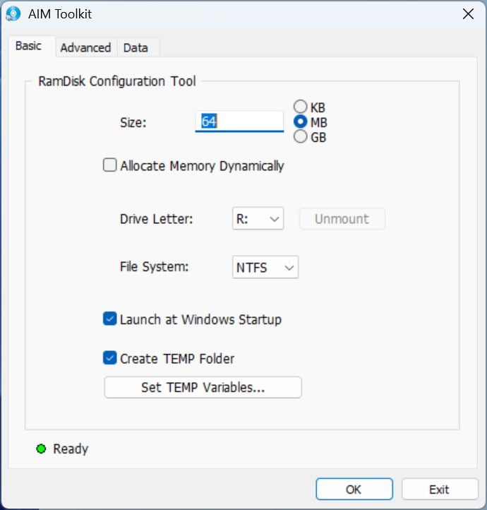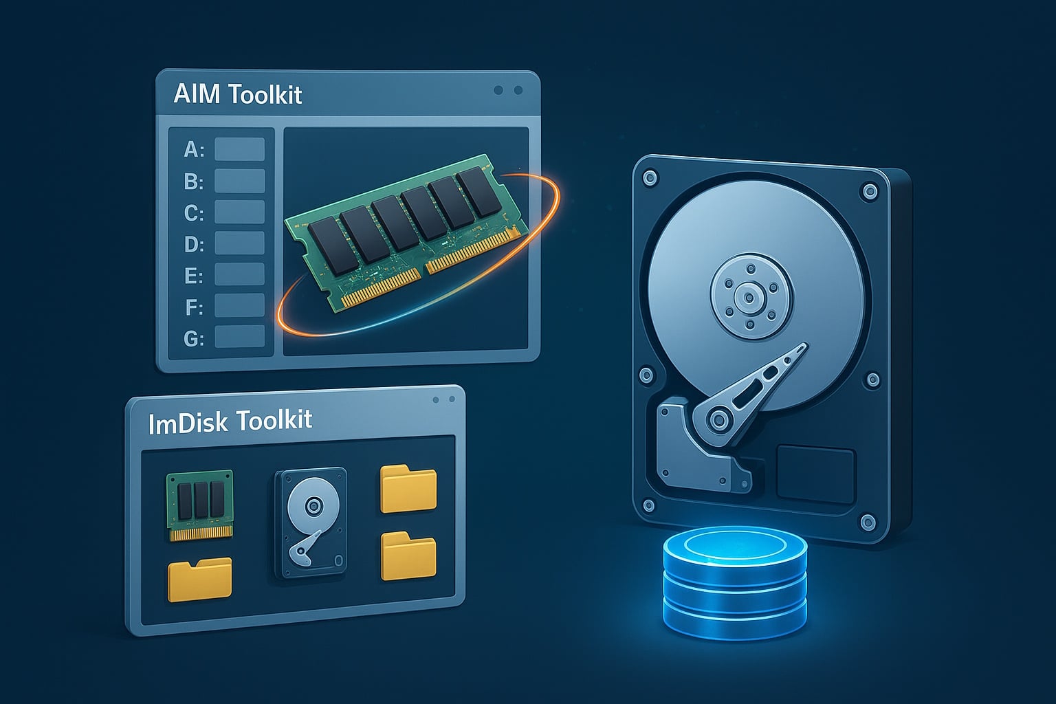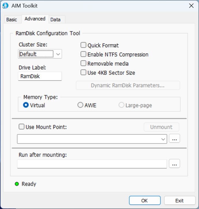 在这样的测试中,你需要一个速度始终快于你所测试的固态硬盘的硬盘。这样才能消除源端或目标端的任何瓶颈。这就是开源工具 AIM Toolkit 的用武之地。另一个流行的替代工具是 ImDisk。这两个工具都提供相同的两个核心功能:它们可以在 RAM 中创建虚拟驱动器,还可以将镜像文件挂载为虚拟驱动器。
