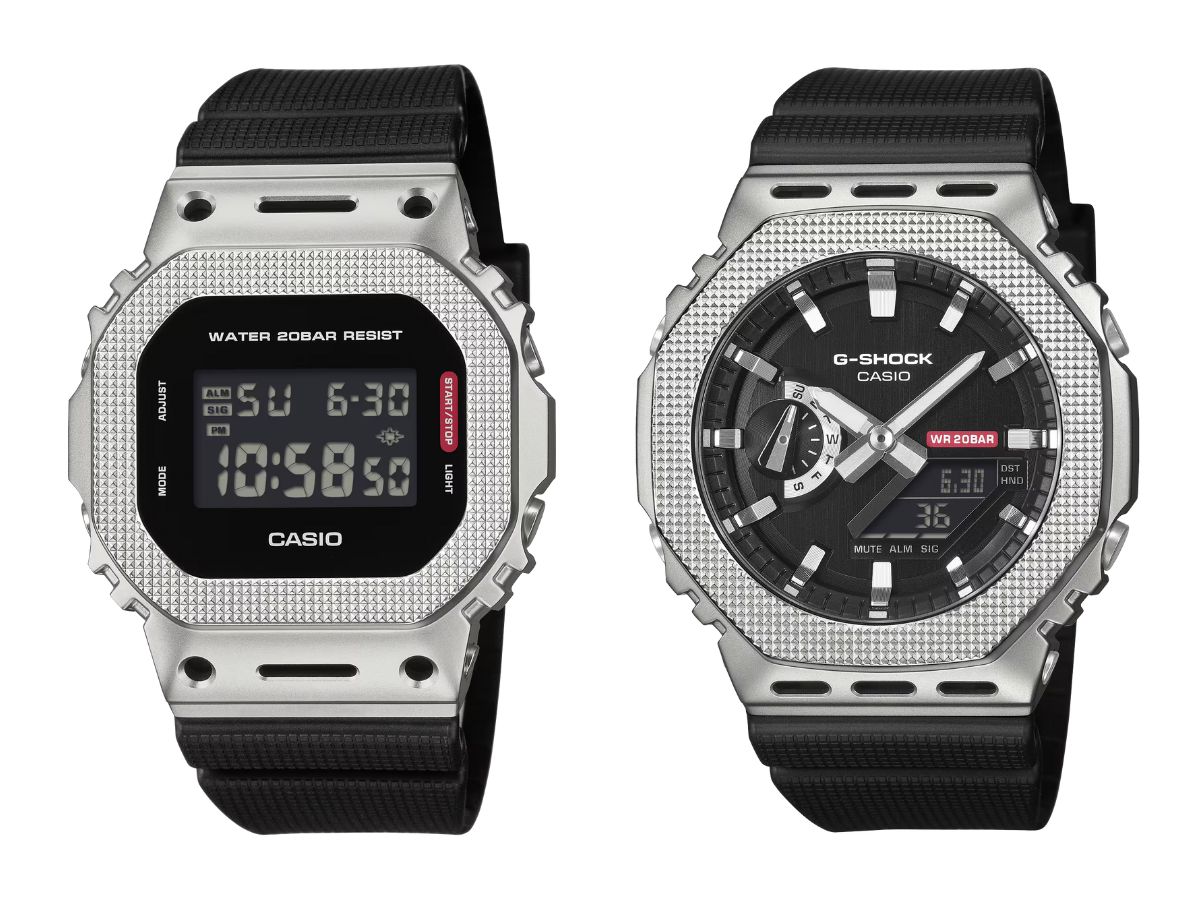 现在,卡西欧已将其中两款纹理金属表圈手表上架其在线商店,如荷兰,西班牙和德国。混合型G-Shock GM-2100M-1A手表售价为 229 欧元,而数字G-Shock GM-2100M-1A售价为 209 欧元。这两款产品都标有 "即将上市 "字样,并邀请潜在客户在每个产品页面上注册,以便在产品上市时收到电子邮件通知。