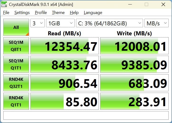 12505 (9384.86min - 12505.3max) MB/s +1% |