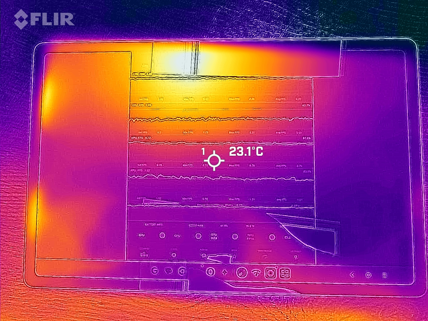 无论我们对它的 CPU 和 GPU 进行何种负载测试,联想平板电脑都丝毫不受影响。即使在进行了一个小时的 "Burnout "基准压力测试后,IdeaTab Plus 的触感也没有发热。正如 3DMark 压力测试所示,在满载情况下,性能几乎没有下降。