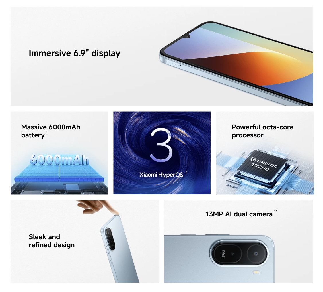 为了便于理解,红米 A7 Pro 采用了相同的 T7250芯片组 红米 A5(亚马逊当前售价 83.70 美元)相同。红米 A7 Pro 在欧洲发布时的其他配置也保持不变,包括 6,000 mah 电池、1300 万像素主摄像头和 6.9 英寸 IPS 显示屏(峰值亮度 650 nits,刷新率 120 Hz)。