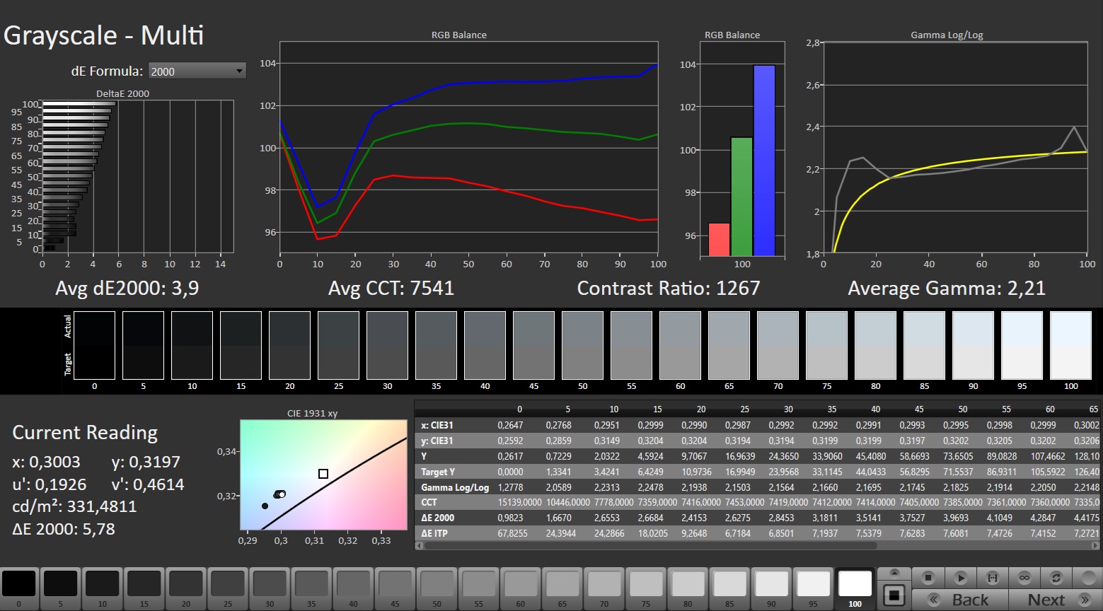 ΔE Greyscale Calman: 3.9 | ∀{0.09-98 Ø5}