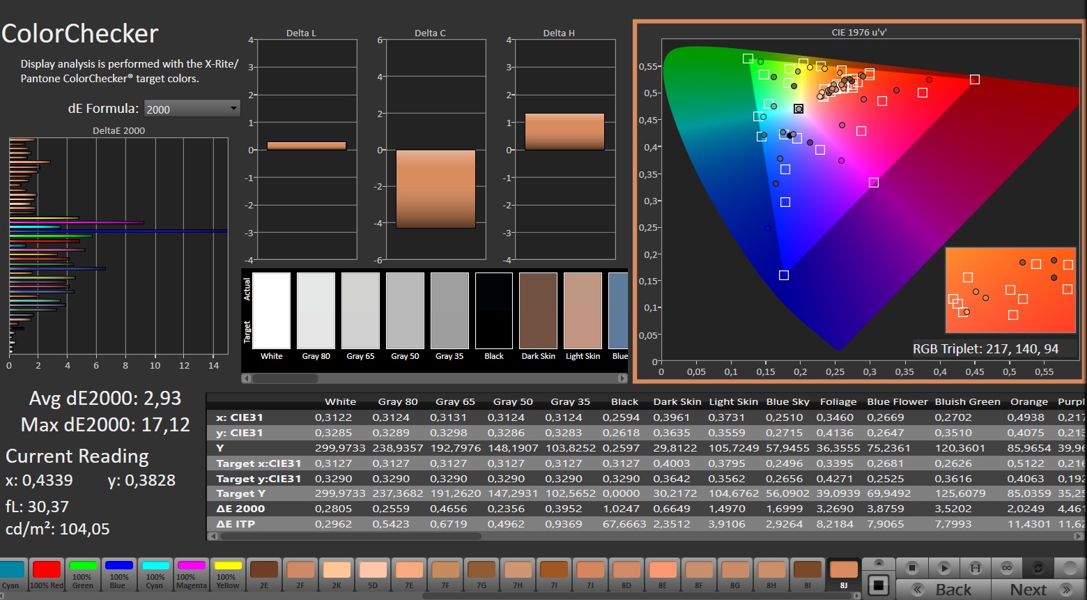 | Colorchecker dE 2000 max. * | 18.19 | 21.16 -16% | 20.52 -13% | 4.42 76% | 17.47 4% |