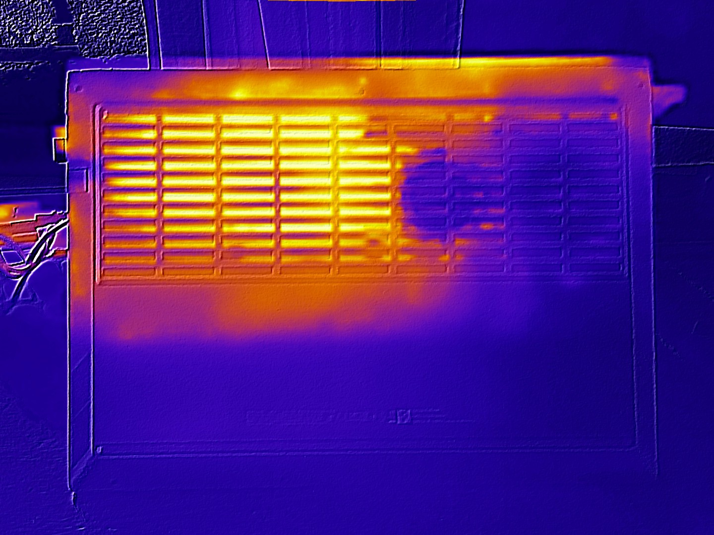 (±) The bottom heats up to a maximum of 43 °C / 109 F, compared to the average of 43.2 °C / 110 F