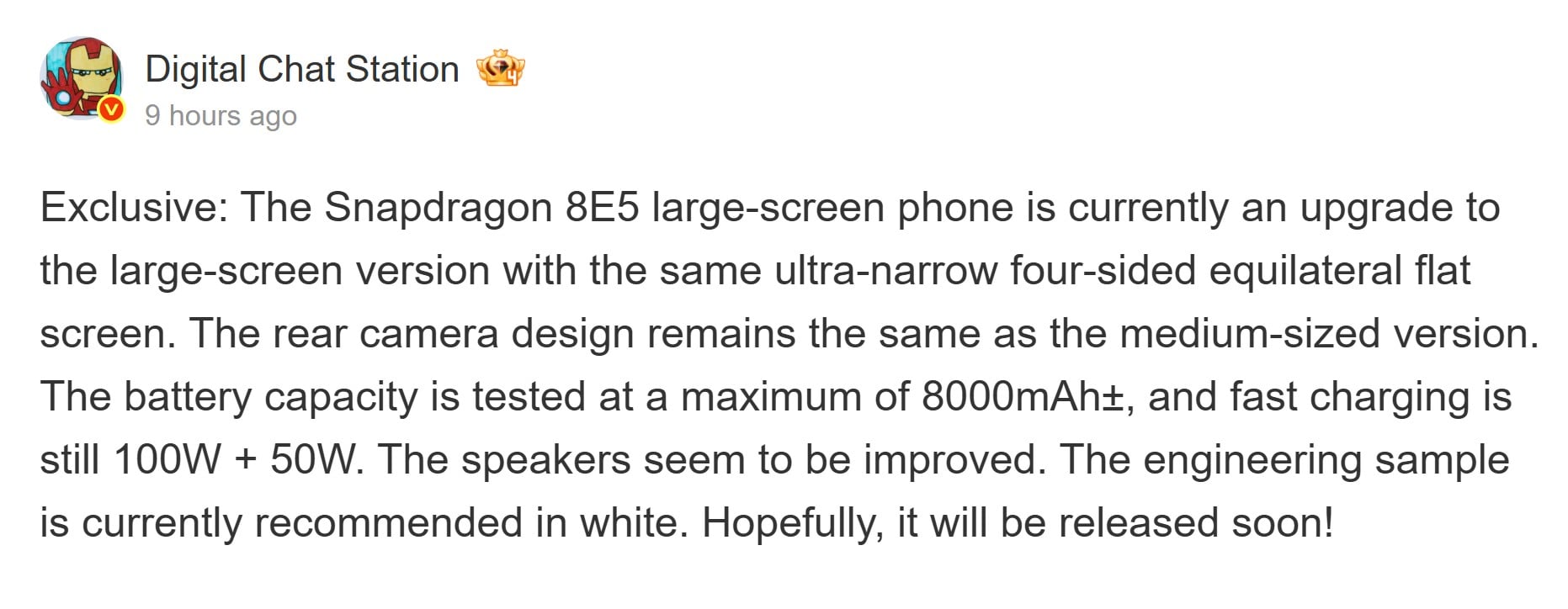 Digital Chat Station 还指出,这款即将发布的旗舰手机将搭载骁龙 8 Elite Gen 5,与小米 17 系列其他设备的 SoC 相同。据报道,该机正面将采用与其他产品相同的设计 相同的设计。但目前还不清楚背面是否会配备副显示屏。