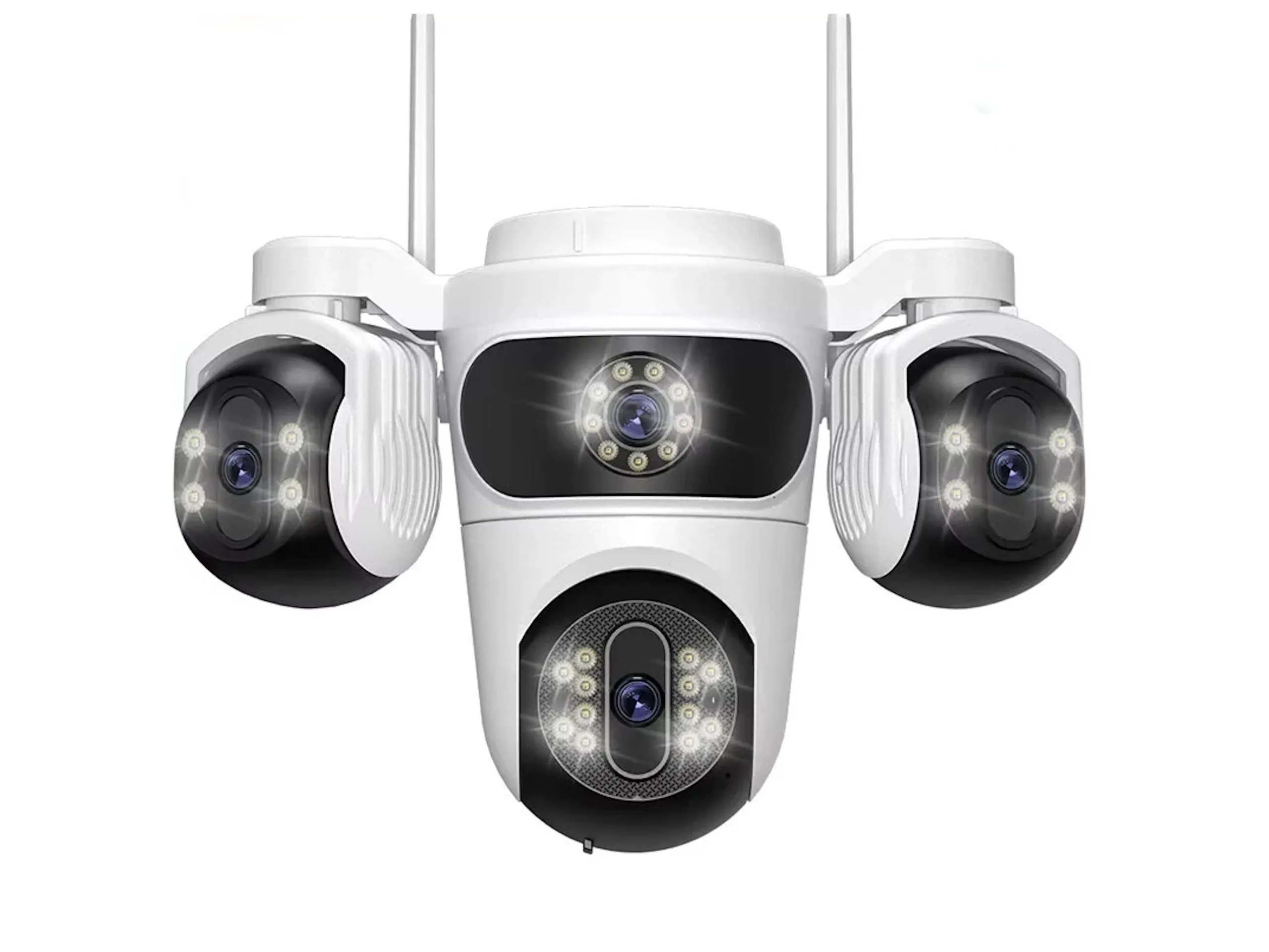乍一看,WQQ890-XM-2 似乎包含四个摄像头。不过,中间上方的摄像头只是个假的。无论如何,这台监控摄像头的分辨率为 1920 x 1080 像素,这意味着 WQQ890-XM-2 无法生成特别清晰的图像。只有下方的摄像头可以远程移动,其他两个摄像头必须手动调整。该设备提供人工智能驱动的自动人员检测功能,因为下部摄像头可以跟踪某些人。