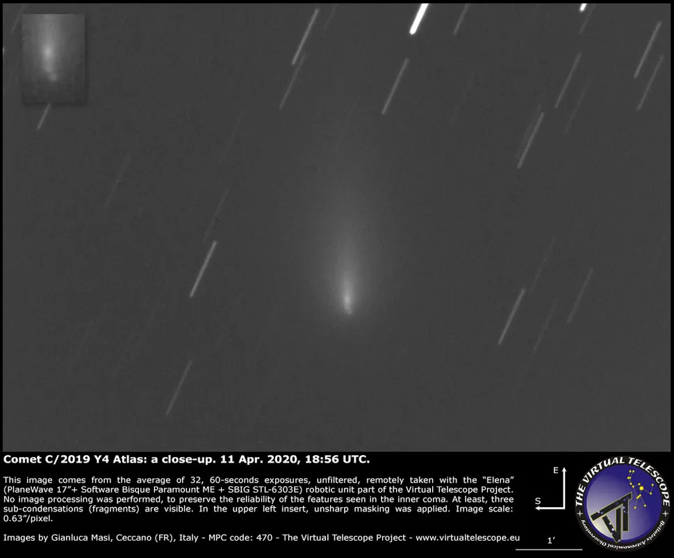 2020年 天文学家发现了彗星 C/2019 Y4 (ATLAS),并认为它将带来从地球上可见的独特奇观 地球.然而,它碎成了几块,一些天文学家认为,这些碎片可能仍在太阳系中 太阳系中。.