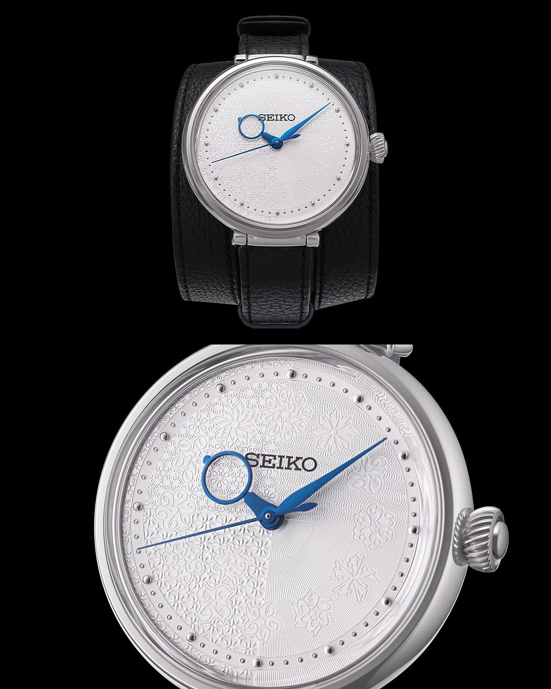 另一款由设计总监石原优(Yu Ishihara)设计的腕表则展现了球形几何结构。其圆形表壳从正面到背面曲线流畅,表面采用抛光和拉丝处理相结合的方式,突出了金属的形状。第三款手表由松本拓也设计,他因设计精工高级系列而闻名。表盘分为四个象限,灵感来自于春天的河流、夏天的太阳、秋天的天空和冬天的雪等季节性图像。