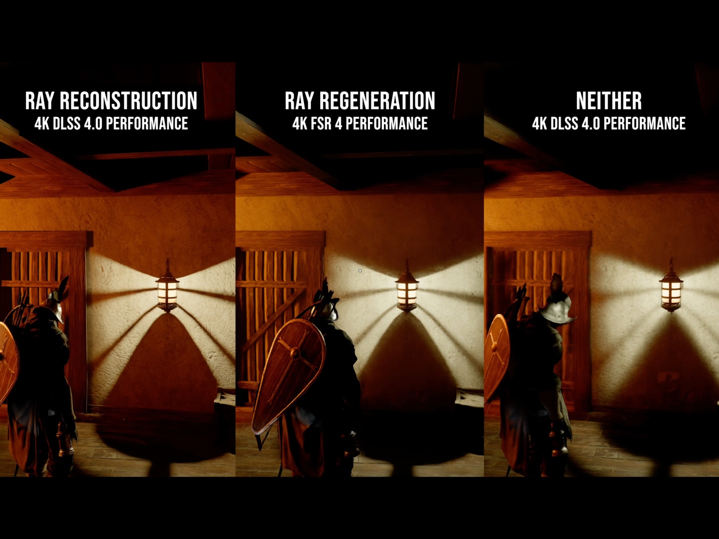 他们发现,将光照调到 "最大 "设置会使噪点更严重,因此建议使用 "电影 "或 "超 "设置。有趣的是,DLSS 4.0 比 DLSS 4.5 的降噪效果更好。Hardware Unboxed 指出,在某些情况下,使用 DLSS 进行升频会带来更多噪点,因为光照的采样计数取决于渲染分辨率,而不是输出分辨率。最好使用 DLAA 或 DLSS 质量模式以原始或接近原始分辨率运行游戏。