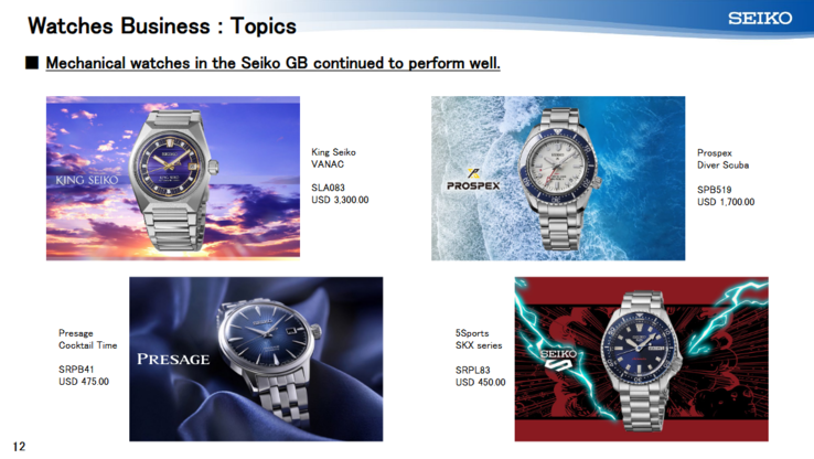 精工的优势在于其广度和覆盖面。它横跨各个手表细分市场--从运动和潜水表款到日常手表和超豪华手表,应有尽有。该公司自己的洞察力表明,新发布的 Prospex(运动表/潜水表)、Presage(礼服表/机械表)和 Seiko 5 Sports(入门级自动表)等新产品的推出促进了销售。其高端部门 Grand Seiko 在全球越来越受欢迎:美国销售强劲(得益于股市上涨),而欧洲的奢侈品需求正在降温。