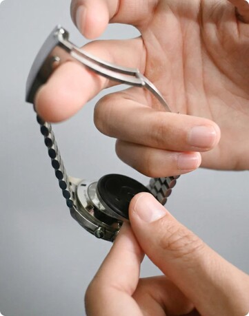 制造商强调说,这样做不需要粘合剂,相反,圆片会通过数千条空气通道自动 "吸 "到手表背面,这样就可以将小工具取下,不会留下任何残留物。Heir 有两大功能。首先,当连接的智能手机收到来电或信息时,振动电机会通知用户。