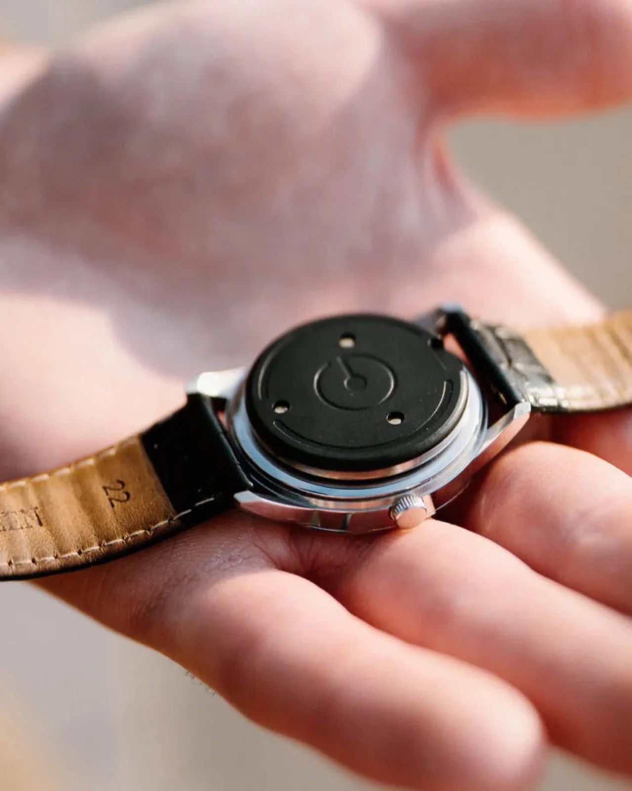 Ganance 推出的 The Heir 手表为所有喜欢模拟手表但又不想完全放弃智能手表功能的人提供了一个小工具。Heir 是一个厚 3 毫米、直径 30 毫米、重 5 克的圆盘,只需将其粘贴在任何手表(如卡西欧 1302PD,亚马逊售价 49 美元)的背面即可。