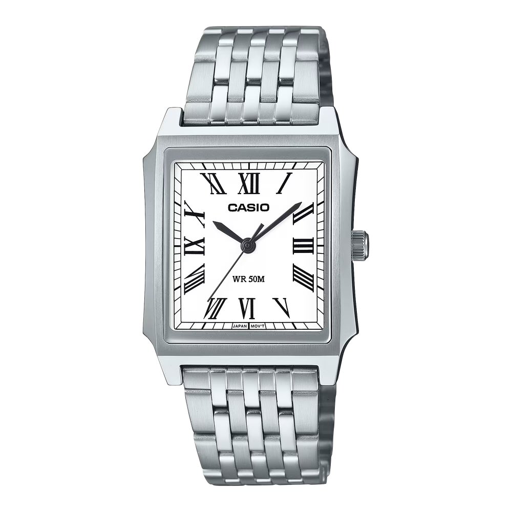 他们在欧洲首次亮相近一年后 欧洲首发近一年后卡西欧终于将两款经典的坦克式指针手表推向美国市场。卡西欧 MTP-B190D-7BV 和 MTP-B190D-1BV 是该公司永恒系列(Timeless Collection)的得意之作。这两款手表均采用优质不锈钢表链和精美突出的罗马数字,立即吸引了人们的眼球。