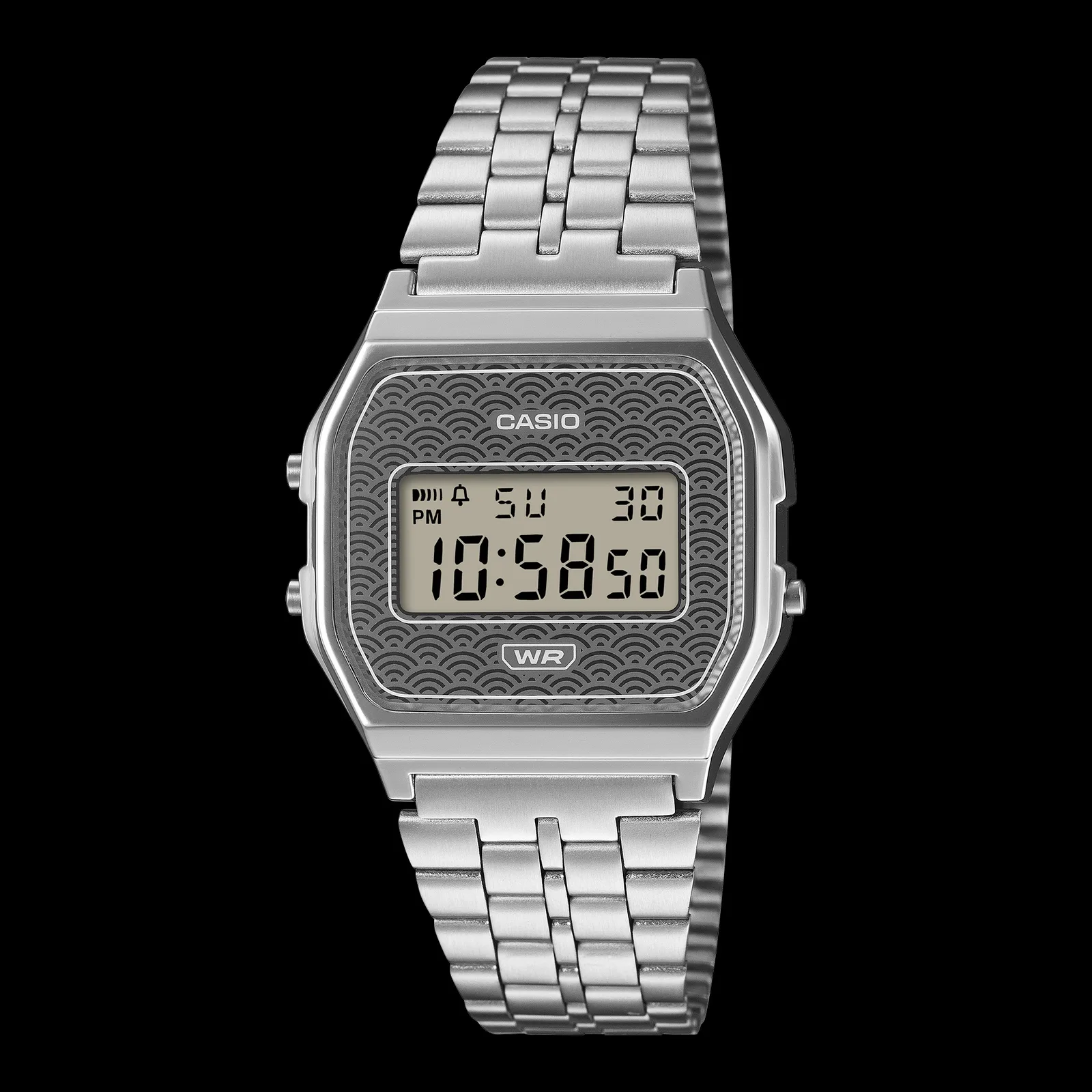 更新主要是视觉上的。这两款腕表的表盘上都有清海叶风格的波浪图案--一种由重复弧线组成的日本传统图案。蓝色A159WEVJ-2采用了深靛蓝色调,而A159WEVJ-7 则采用了色调更为柔和的银色。则采用了更为柔和的银灰色。卡西欧表示,表盘同时使用了印刷元素和气相沉积技术,因此看起来有轻微的光泽。