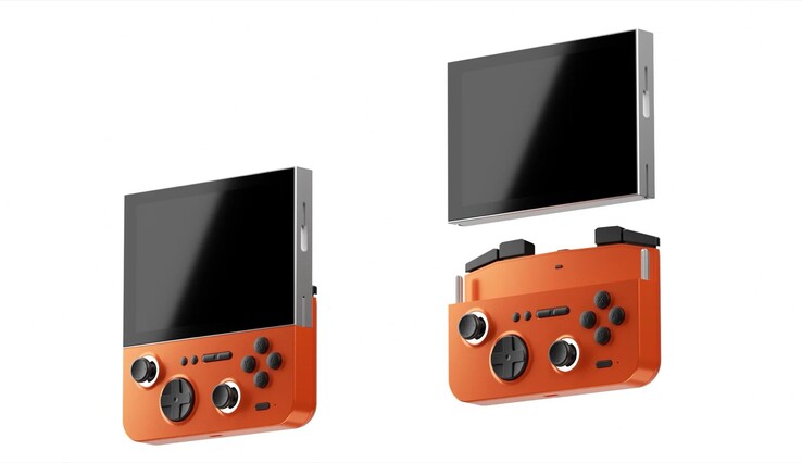 乍一看,GameMT E5 ModX 就像一个标准的游戏掌机,外形酷似宽大的任天堂游戏机。它的特别之处在于采用了模块化设计,显示屏可以从控制器模块中分离出来。