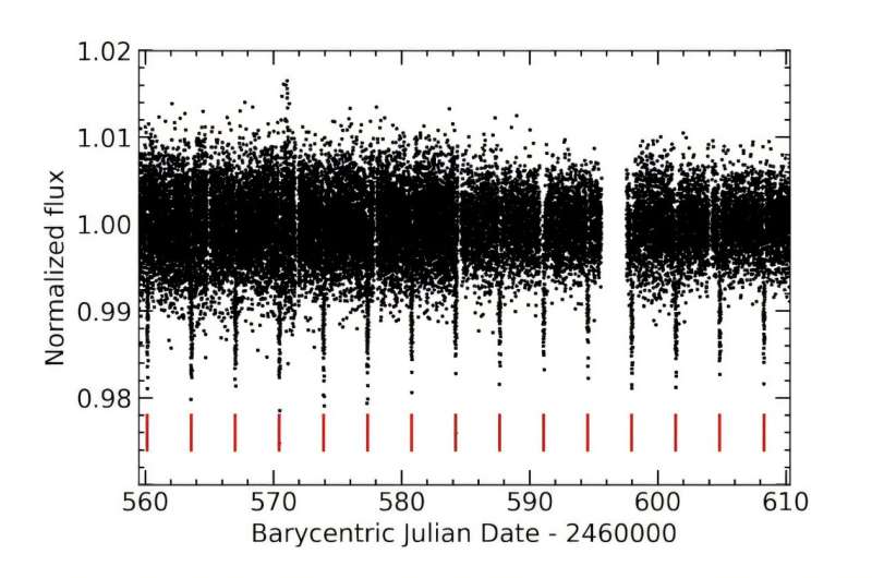 它距离地球约 1,477 光年 地球它是一颗光谱型为 G3V 的贫金属恒星。但在它的光变曲线中,天文学家发现了一个凌日信号。因此,通过进一步研究,他们发现这颗系外行星是一颗热木星,半径是 木星.