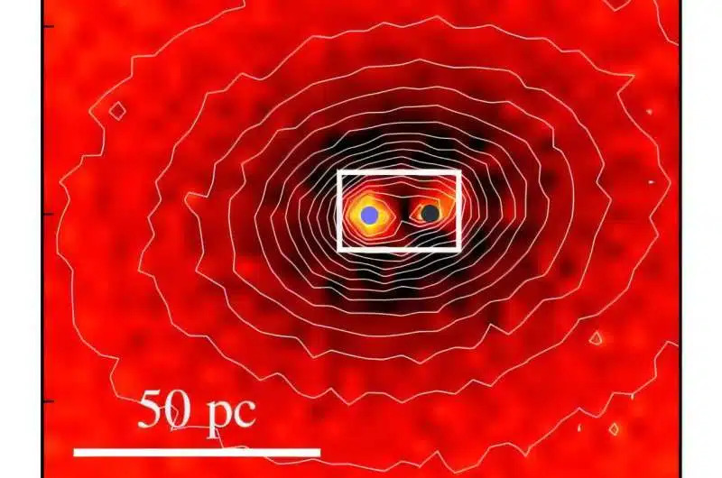 为了解释这种情况 天文学家研究了这个位于室女座星团中的星系。在詹姆斯-韦伯太空望远镜的近红外摄谱仪(NIRSpec)的帮助下,天文学家研究了这个位于室女座星系团中的星系。根据研究结果,这一现象可能是由两个黑洞合并造成的。