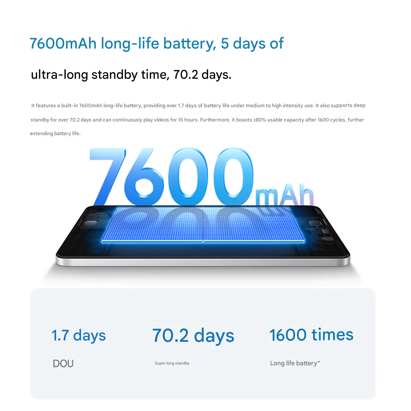 虽然这款平板电脑 体积小但小米为其配备了一块相对较大的电池。Pad SE 2 配备 7,600mAh 电池,满电情况下可播放长达 15 小时的视频。