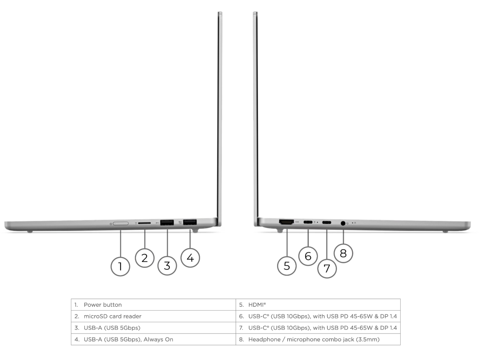 此外,这款笔记本电脑还配备了 54.7 Wh 的电池,支持 65 W 充电,在 150 尼特条件下播放 1080p 本地视频时,联想称其续航时间超过 28 小时。IdeaPad Slim 5x 13Q8Y11 目前只能配置 1200p IPS 显示屏,尽管联想提到有 1600p 的替代品。作为参考,这款 1200p 显示屏覆盖了 100% 的 sRGB 色彩空间,峰值亮度为 400 尼特,刷新率为 120 赫兹。