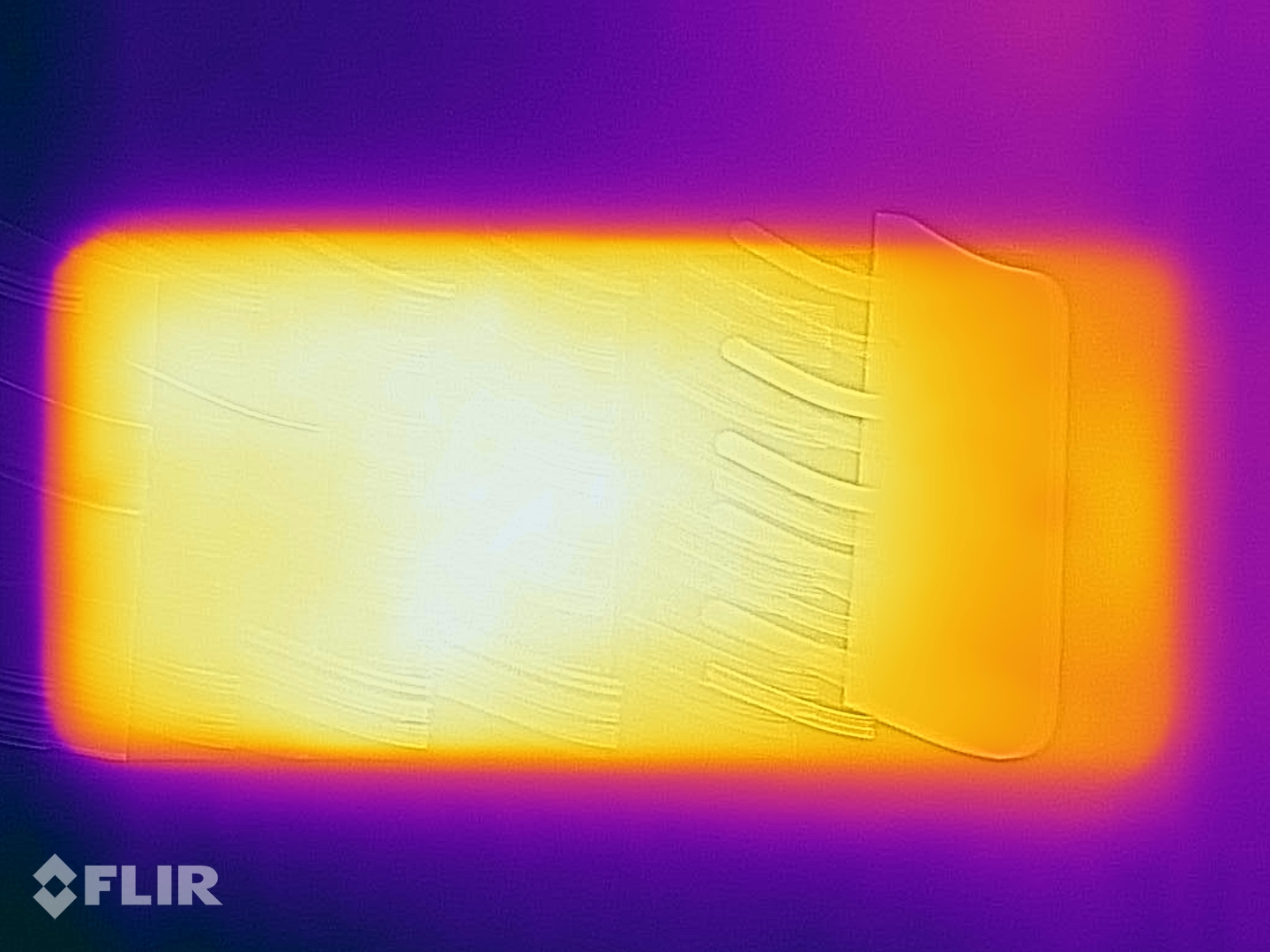 (±) The bottom heats up to a maximum of 40.7 °C / 105 F, compared to the average of 34 °C / 93 F