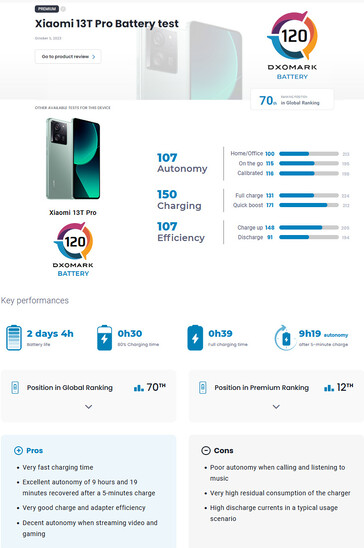 小米 13T Pro 的电池续航时间无法与小米 11T Pro或小米 12T Pro在这方面的综合排名为第 70 位。总之,与去年的小米 12T 系列相比,小米 13T 系列似乎并不一定是小米所希望的升级版。请参阅我们的小米 13T和小米 13T Pro发布文章,了解更多硬件细节以及它们与前代产品的区别。
