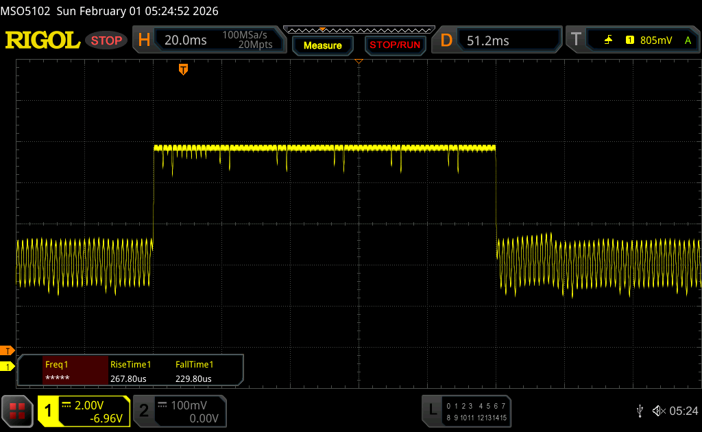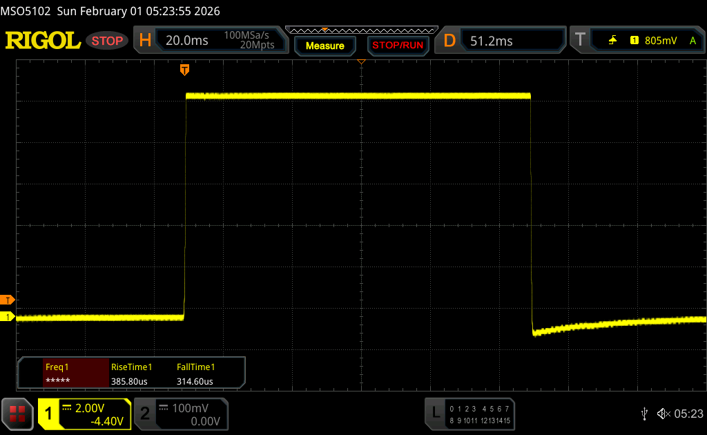 | 0.7 ms ... rise ↗ and fall ↘ combined | ↗ 0.39 ms rise | |