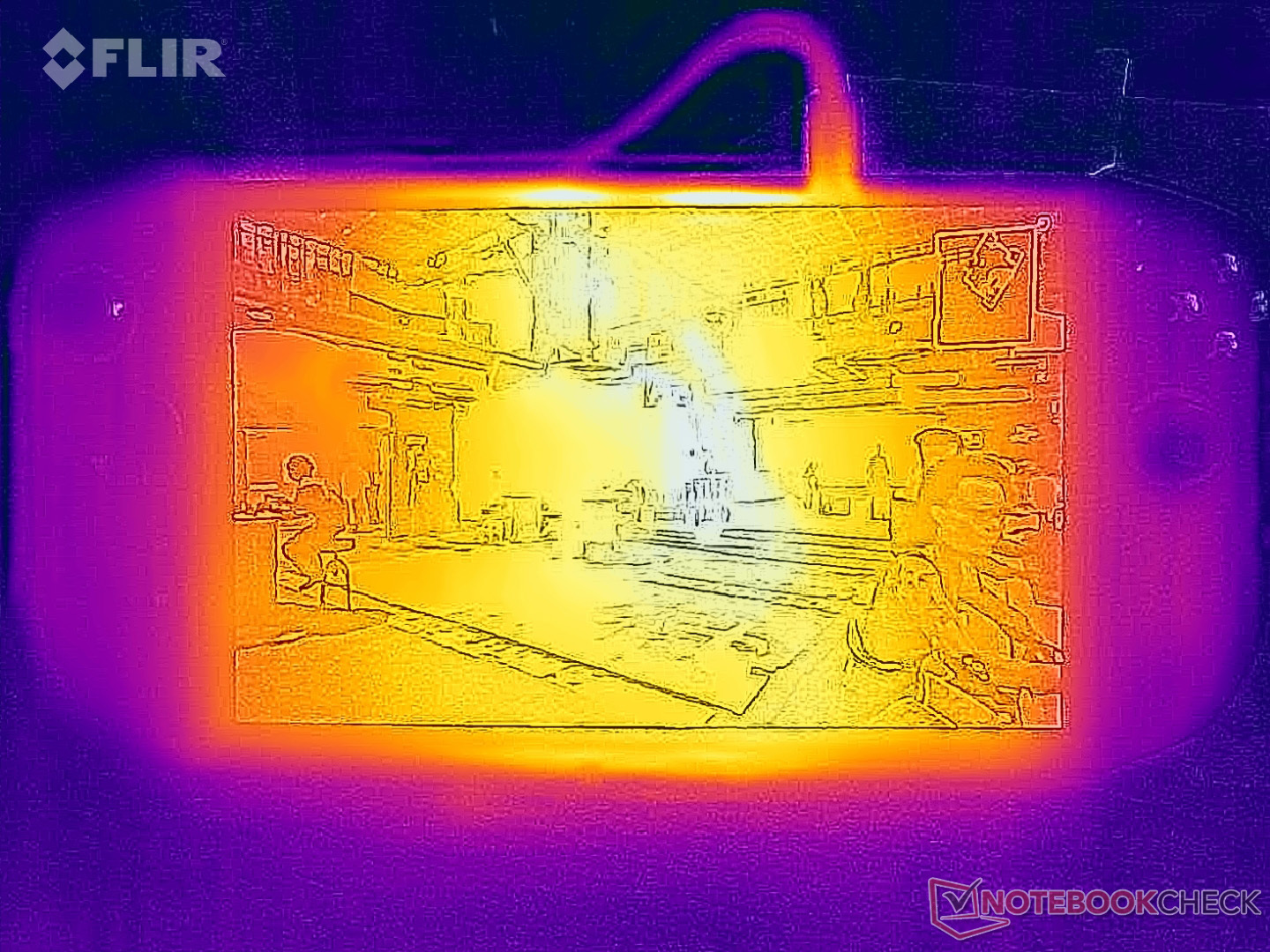 (-) The palmrests and touchpad can get very hot to the touch with a maximum of 42.5 °C / 108.5 F.