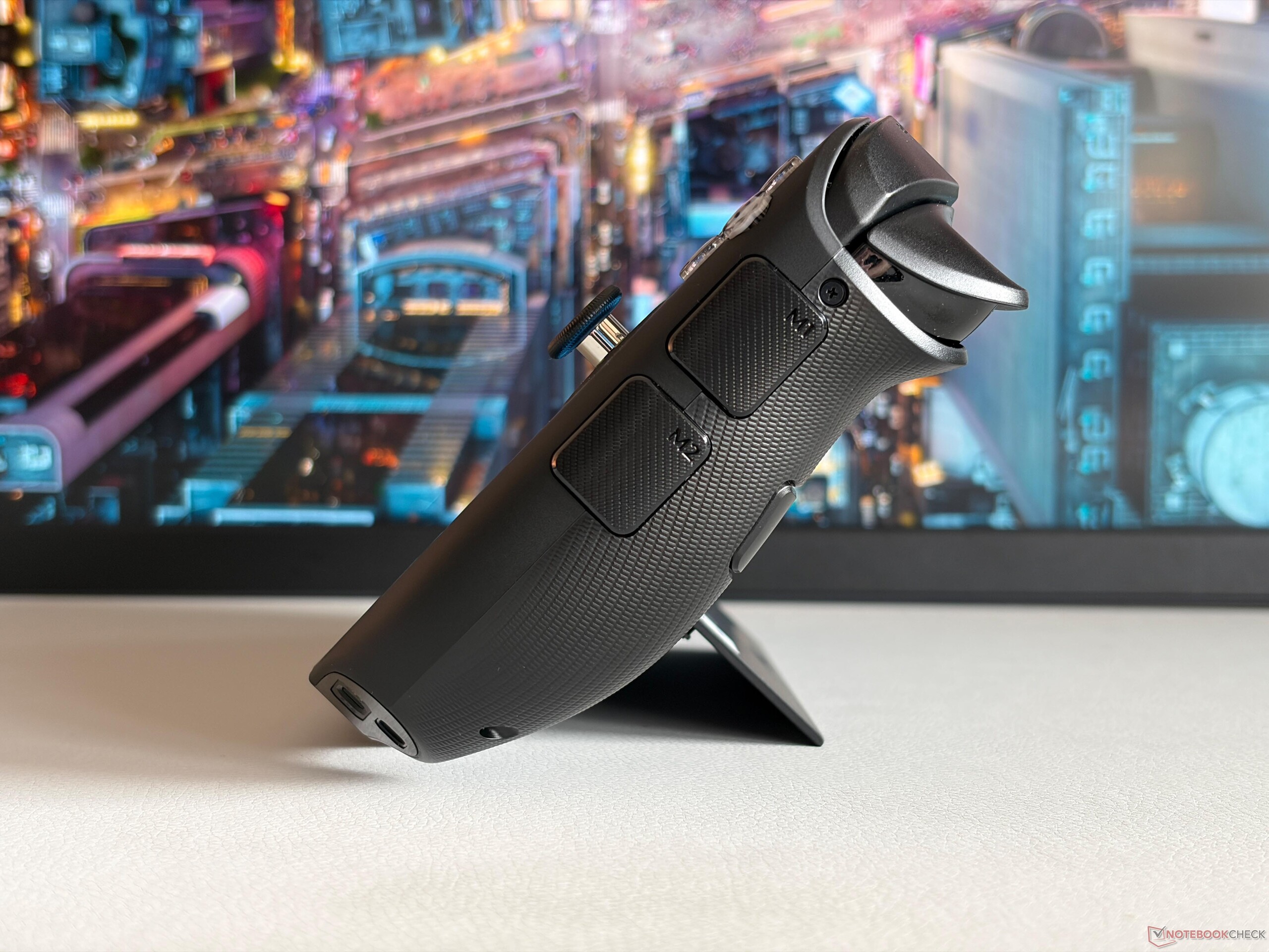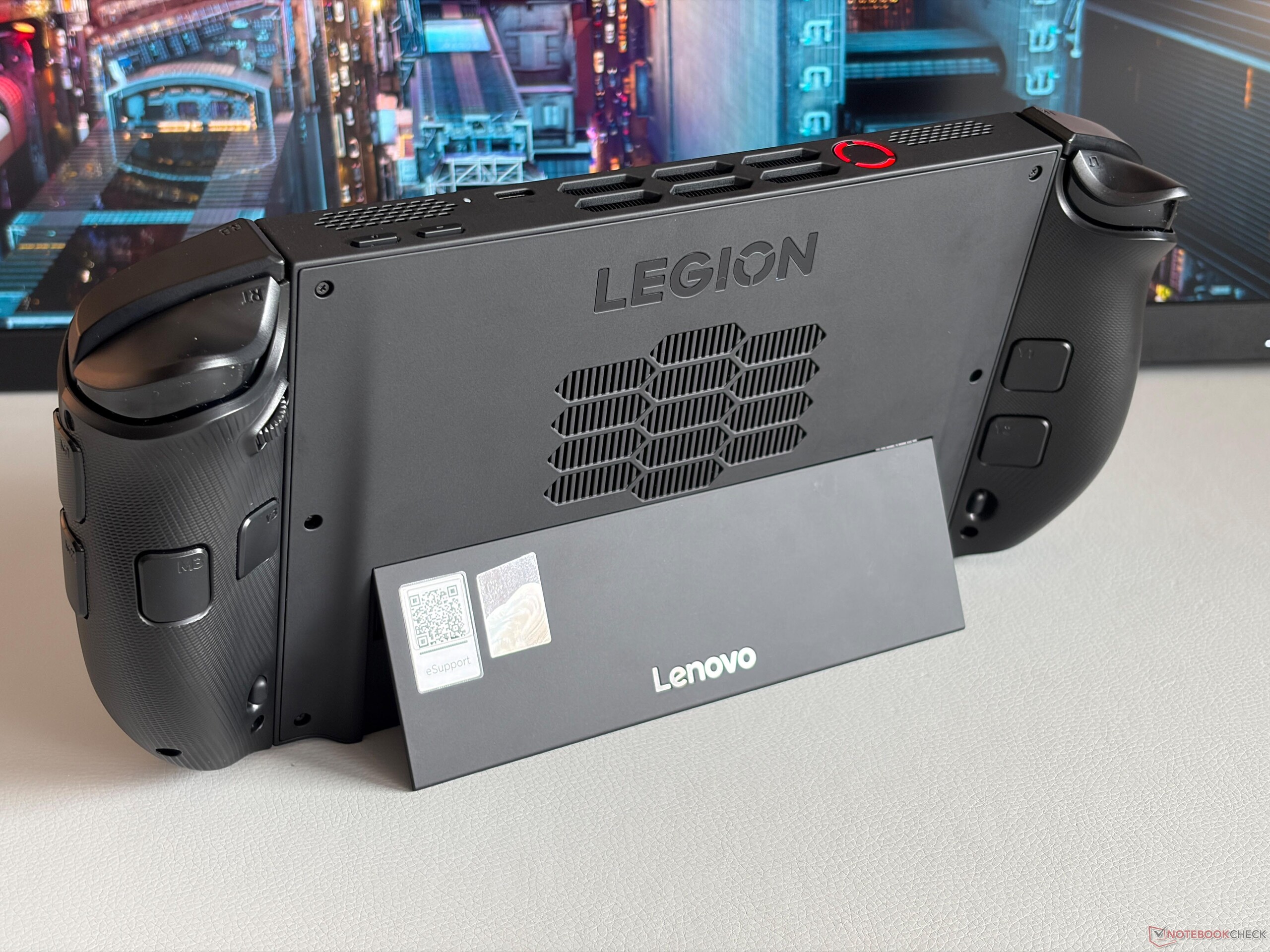 新款联想Legion Go 2 的亮点显然是 144 Hz OLED 显示屏。图像质量非常出色,游戏看起来令人惊叹,尤其是 HDR 内容受益于极高的亮度(峰值亮度超过 1,100 cd/m²)。然而,它也是市场上最大、最重的游戏手持设备之一,这使得可拆卸控制器和集成脚架的概念变得真正有用。尽管如此,这种设计也有缺点,包括电池容量略小(由于内部空间有限)和音频较弱,因为扬声器不能朝向用户。