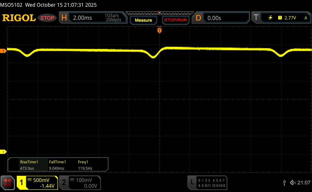 按照 OLED 屏幕智能手机的惯例,小米使用 PWM 控制亮度。根据制造商的说法,小米 15T 在高亮度范围内的标准调光方式是直流调光,而在低亮度时则采用高频 PWM 调光(3840 Hz)。根据我们的测量,我们也可以确认后者。