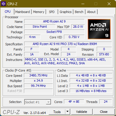 | Lenovo ThinkPad P16s Gen 4 21RX000YGE AMD Ryzen AI 9 HX PRO 370 ⎘ AMD Radeon 890M ⎘ 64 GB Memory, 1024 GB SSD | Amazon: $2,639.19 List Price: 2440 Euro | 2 kg | 23 mm | 16.00" 1920x1200 142 PPI IPS LED | |