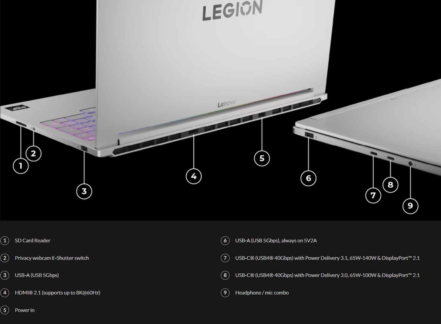 遗憾的是,联想将Legion 7a 限制为 英伟达GeForce RTX 5060笔记本 GPU,配备 8GB VRAM。联想在发布时提供 Ryzen AI 7 450和 Ryzen AI 9 HX 470处理器和 32 GB LPDDR5X-8533 焊接内存。Legion 7a 配备了与Legion 7i 相同的 16 英寸、2.5K、500 nit 和 240 Hz OLED 显示屏,以及 84 Wh 电池。