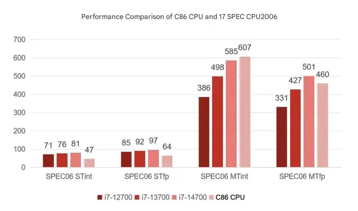 现在,Thunderobot 转向了 Hygon C86,这是一款中国制造的 x86 处理器,也被称为黑武士猎刃 Pro。Hygon C86 由 16 个内核和 32 个线程组成,但 TDP 不详,据说介于英特尔的 酷睿 i7-13700和 酷睿 i7-14700K之间。不过,2.8 GHz 的峰值时钟速度使 Hygon C86 的单核性能达到了 酷睿 i7-12700在 Geekbench 6 的单核和多核基准测试中,Hygon C86 的单核性能分别为 1,073 分和 8,811 分,表现相当糟糕。