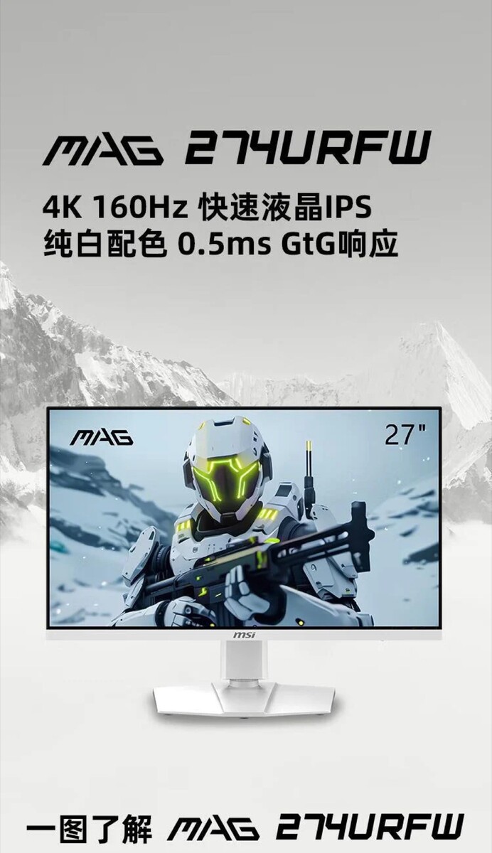 微星 MAG 274URFW 游戏显示器将在中国上市,售价为 2499 元人民币(约合 321 欧元),但制造商尚未提供任何可能的国际上市信息。