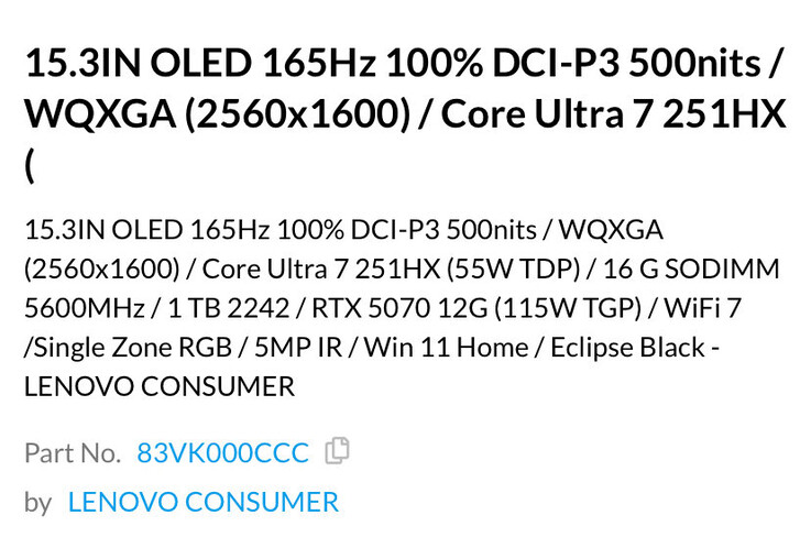虽然这些都在意料之中,但亚马逊还提到了尚未发布的酷睿Ultra 7 251HX处理器。同时,Cendirect Canada 明确提到了 12 GB VRAM 版本的 NvidiaGeForce RTX 5070。这款未发布的 GPU 拥有高达 115 W 的总显卡功率 (TGP)。 似乎将在Yoga Pro 7 和 ROG Zephyrus G14 以及其他游戏笔记本电脑。