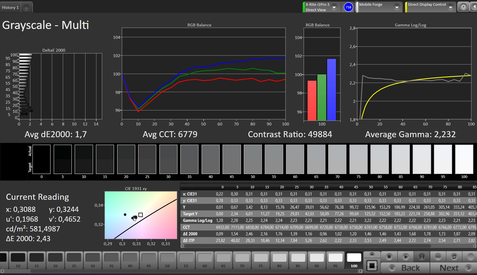 ΔE Greyscale Calman: 1.7 | ∀{0.09-98 Ø5}