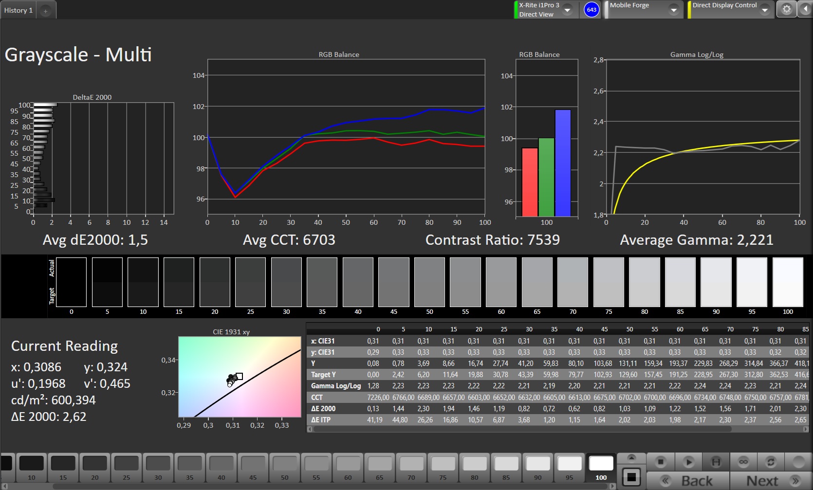 ΔE Greyscale Calman: 1.2 | ∀{0.09-98 Ø5}