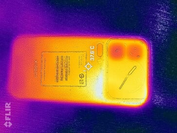 (-) The maximum temperature on the upper side is 48.7 °C / 120 F, compared to the average of 35.2 °C / 95 F, ranging from 21.9 to 247 °C for the class Smartphone.