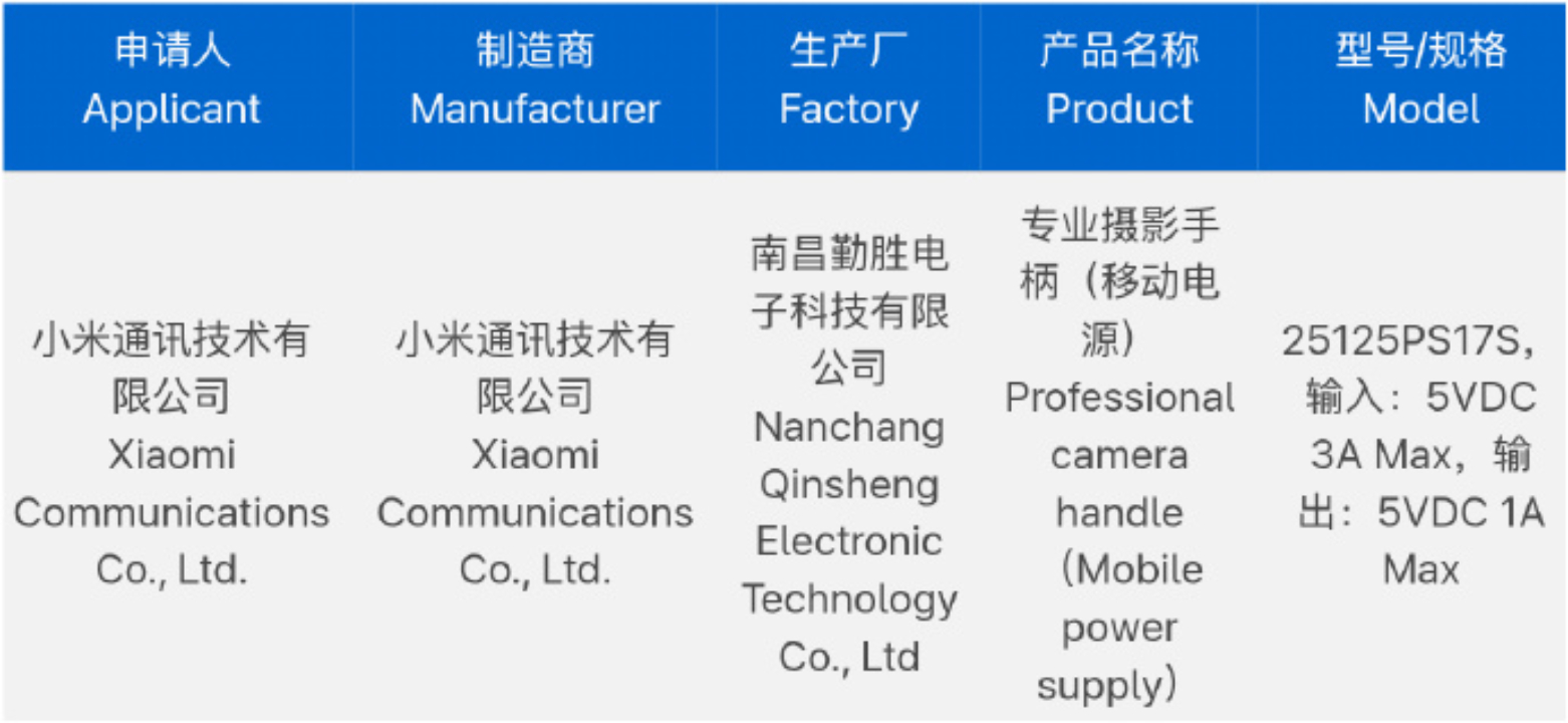 一方面,泄密者发现了小米 17 Ultra 摄影套件的相关认证。顺便提一下,这个配件的图片 本周早些时候有两种颜色。根据下面的认证文件,由于内置电池,新的摄影套件能以 15 W 的功率为小米 17 Ultra 充电。从这个意义上说,《数码聊天站》认为摄影套件可以作为一个电源箱使用,而小米已经为其宣传了这一功能 目前的小米 15 Ultra 版本.