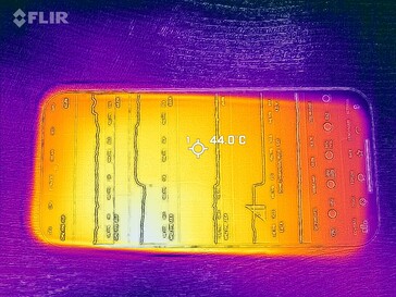 (-) The maximum temperature on the upper side is 50.6 °C / 123 F, compared to the average of 35.2 °C / 95 F, ranging from 21.9 to 247 °C for the class Smartphone.