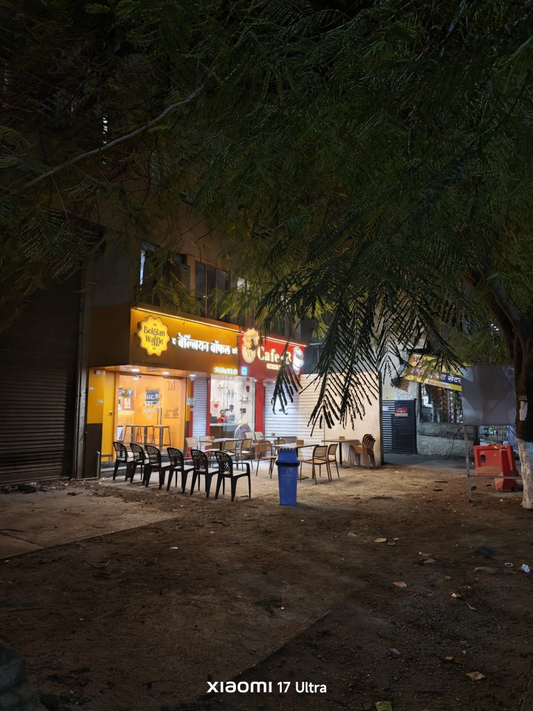 即使在夜间,小米 17 Ultra 也能提供更好的图像质量,同时保留大部分细节。我注意到智能手机在夜间会偏暖一些,但照片看起来更舒服。不过,两者都能很好地捕捉环境,iPhone 16 Pro 的色彩略显暗淡。