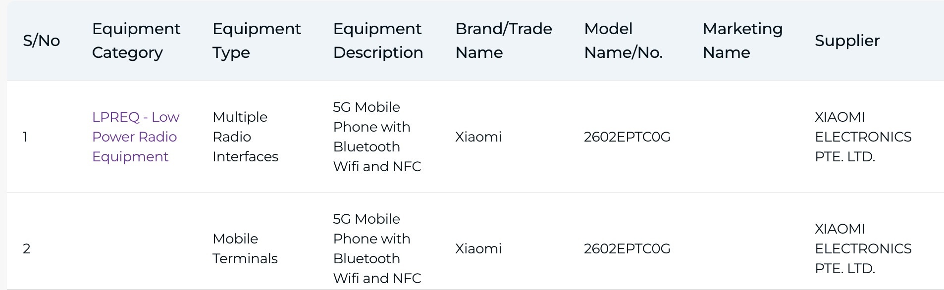现在,新一代小米 17T 系列已在新加坡获得 IMDA 认证。这两款通过认证的设备型号分别为 "2602DPT53G "和 "2602EPTC0G"。根据 之前泄露的这两个型号分别属于小米 17T 和小米 17T Pro 的全球版本。