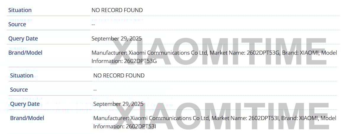 也就是说,IMEI 数据库中出现了两款未发布的小米智能手机。这两款手机的型号分别为 2602DPT53G 和 2602DPT53I,属于同一底层设备。至少就目前而言,还没有与之相当的中国型号出现。不过,后缀 G 和 I 表明小米将在印度和全球发布 "2602DPT53"。