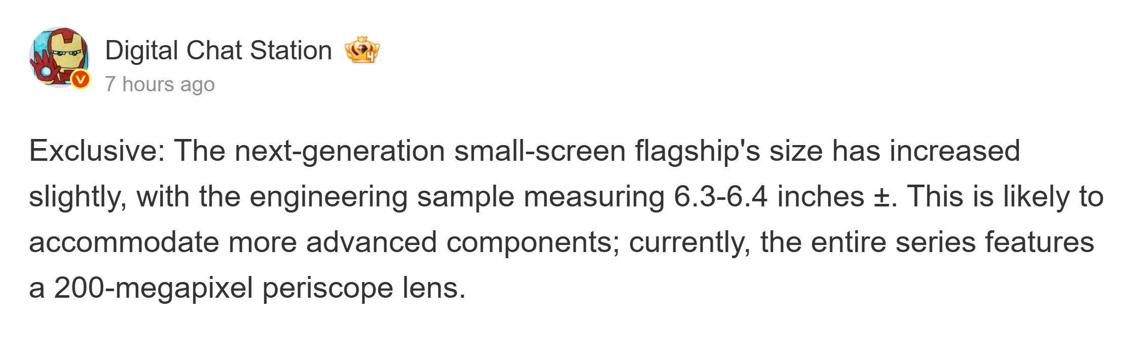另一方面,传闻中的骁龙 8 精英 6 Pro 可能只适用于小米 18 Ultra、Pro 和 Pro Max 系列机型。现在,虽然标准版手机 可能会错过Pro SoC,但来自 Digital Chat Station 的最新报道带来了一些好消息。据报道,它将采用比前代产品略大的显示屏。