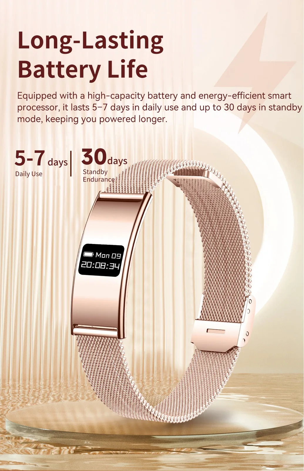 纤薄的金属智能手环越来越注重戴在手腕上的美观,而不是内置多少功能。 Rogbid的新款Vogue 手环正符合这一趋势。它被当作日常首饰来销售,同时还能追踪你的健康状况。该公司称,它的厚度为 2.8 毫米,是迄今为止世界上最薄的健康智能手镯。